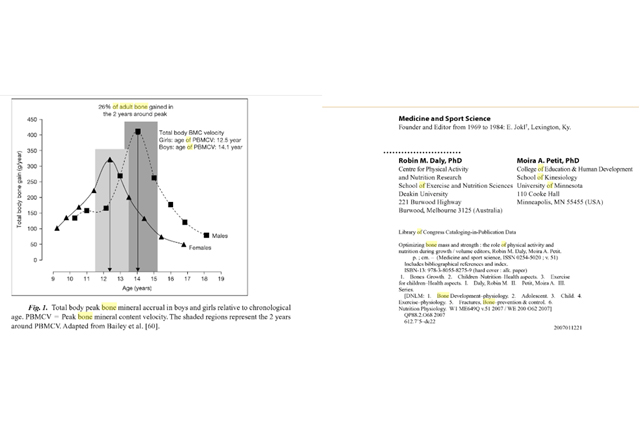 Ngoài nghiên cứu Saskatchewan được nêu ở trên, vấn đề 25% khối lượng xương của người trưởng thành được hình thành trong hai (02) năm phát triển mạnh nhất của tuổi dậy thì cũng được chứng mình bởi hai tiến sỹ Dược của Trường đại học Minnesota Mỹ và Đại học Khoa học Dinh Dưỡng Deakin Úc (kết quả nghiên cứu được minh họa trên biểu đồ dưới đây).